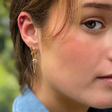 choosebyfelice Celestial handcuff earring is designed with two huggie earrings that connect with a dainty chain. For this cute and dainty earring you need two piercings. Flaunt this beauty with go to ear cuffs for a fashionable look.