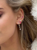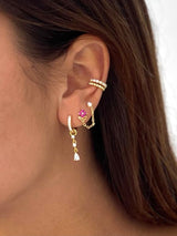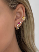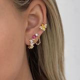 Create an precious unique look with choosebyfelice Chained Flower Stud Earring, designed with one expertly made Pink flower stud and one dazzling round clear zirconia stone stud both connected with a small luxurious chain. Rock this statement earring with an ear cuff or huggie earring to add some glam to your stacked look that will turn heads wherever you go. Shop yours now!