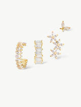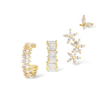 Elevate your style game with choosebyfelice's Charlie's Angel Earring Set. These dazzling earrings are crafted with shimmering clear baguette zirconia stones, creating unique asymmetric designs that are sure to turn heads. And with a classic 18ct gold plating, they add a touch of glamor to any outfit. Dare to be different with these heavenly earrings!