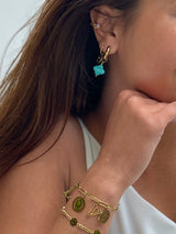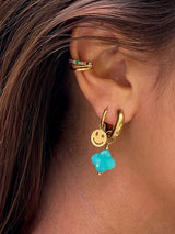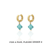 Give your love for color an upgrade with choosebyfelice  Turquoise Clover Hoop earring, featuring one expertly crafted dazzling natural stone clover pendant that dangles gracefully underneath a hoop of glowing 18ct gold plating. Wear this versatile beauty as pair or combined with a few other earrings for an exquisite layered look that turn heads wherever you go. Shop yours now!