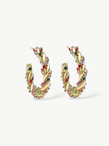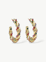 These radiant 14ct gold-plated hoops are wrapped in a dazzling array of zirconia stones in vibrant shades: from hot pink and calming lavender to turquoise, ocean blue, and crystal white. The double hoop twist adds depth and sparkle that catches the light from every angle – making them the perfect choice from dusk till dawn. Ready to turn heads? Grab yours now – before they’re gone.