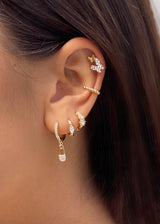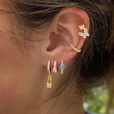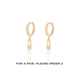 Inspiring a striking style with choosebyfelice Dangling safety pin Huggie Earring. Eye-catching yet subtle, this earring highlights a gleaming zirconia-encrusted safety pin pendant of 14K gold plating that dangles gracefully from a huggie. Flaunt this gem with a graphic sweater as a must-have addition to your huggie stack for a glowing look.