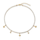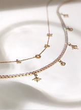 Dazzle like never before in choosebyfelice Diamond Charm Necklace, featuring five adorable pendants that hang gracefully underneath a gorgeous zirconia stone adorned necklace of 14K gold plating. It's great for everyday wear, and will add a polished, yet glam vibe to any look. You will receive endless compliments in this shiny piece.