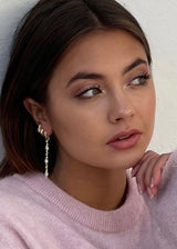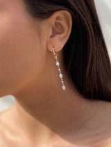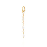 Sparkle with sophistication and grace in choosebyfelice Diamond Drop Earrings, featuring a small golden hoop earring with a chic luxurious long charm set with three marquise cut and 3 small single cut zirconia stones, all in 14K gold plating. So when you are looking for earrings that twinkle with style, this beauty is the perfect way to complete your outfit. These earrings are designed to give you that instant glamour on all your next events. Shop yours now.