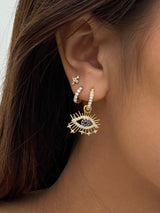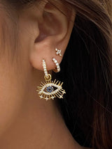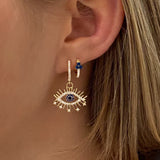 Take the term "eye-catching" to a whole new level with choosebyfelice Lucky Eye earring. Dangling from a sparkling hoop, is a stunning lucky eye pendant design for the world to see. Wear it alone or combined with a dainty pavé huggie or stud to add a bit more "wow" to the effect.