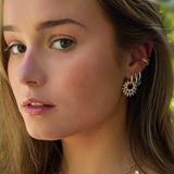Sparkle brighter with choosebyfelice Open Sun Huggie Earring. Eye-catching and elegant, this chic design shows off a dazzling Zirconia stone-encrusted sun pendants that attaches to an elegant huggie through the center. Flaunt this gem with a series of other sleek huggies or studs.