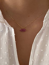 Let your playful style shine through in choosebyfelice Pink Lips Necklace, featuring a dazzling pink zirconia-stone adorned lip-shaped pendant that dangles gracefully from a classic & fine chain necklace. Wear this gem alone or combined with a few other necklace for an eye-catching trendy stacked look that will turn heads wherever you go! Shop yours now.