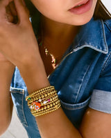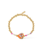 Adorn yourself with choosebyfelice Golden Balls Heart bracelet, featuring an unique hand painted Orange Heart-shaped Bead set into a bracelet with real pearls and an array of round 5mm balls all with an luxurious 18ct gold plating. This beautiful bracelet is the perfect everyday piece particularly when you combine it with a few other bracelets for a stylish stacked look that will turn heads wherever you go. Shop yours now!