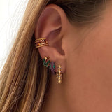 This luxury hoop earring with studs comes with a 18K Gold plating fully set with multi color zirconia stones. It is perfect to wear daily and easy to combine with your favourite jewelry.