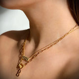 Highlight your striking sense of style in choosebyfelice I AM Twisted Lock Necklace, featuring a chic oval lock that hangs gracefully on a closed forever chain expertly fashioned in glowing 18 karat gold plating with an Initial of your choice. Either you choose the Initial from yourself or your beloved one. This eye-catching Initial necklace is a brilliant addition to your daily stack of necklace for an exquisite style.