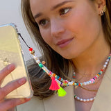 Show off your trendy sense of style with choosebyfelice Ibiza Phone Case Necklace, featuring a sweet series of several cute beads and tassels set into a lustrous chain of artificial pearls design. This phone necklace is the spring/summer trend of 2021!