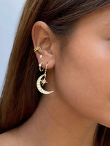 Channel your inner Moonchild with choosebyfelice Luxury Moon Huggie Earring, featuring an expertly made cresent moon that is charm that is dangling gracefully underneath a plane 14K gold plated huggie hoop earring. Wear it as pair or combined with the Sparkling Planet earring for a trendy and stylish look.