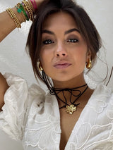 The flower trend has made it’s comeback from the ‘90 and 2000s and we're totally embracing it! With our NEW IN lovely Rihanna flower cord chain necklace. Featuring a exquisite flower pendant plated with premium 18ct gold for long-lasting quality and waterproof protection. The adjustable cord allows for versatile styling, whether it's as a double choker, a half long necklace with a trendy bow, or long for a sexy cleavage accent. Don't miss out on this stunning piece - order yours today!