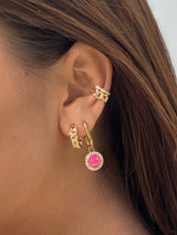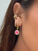 Add a pop of color to your every day look with choosebyfelice Sunny Smiley Hoop Earring, designed in glowing 18K gold plating with pink enamel this earring consists of one oval hoop, with a sparkling pavé Sun shaped Smiley Face charm that dangles gracefully underneath . Wear it as pair or combined with a few huggies or studs for a trendy stacked look. Shop yours now.