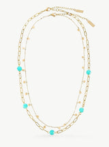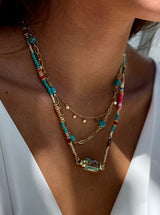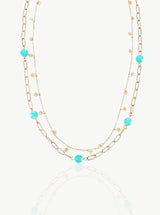 This necklace is made of a stainless steel base with 18ct Gold plating.The stones are natural Turquoise gemstones. This necklace is waterproof and will not fade! All our jewels are 100% hypoallergenic, nickel, lead and cadmium free!