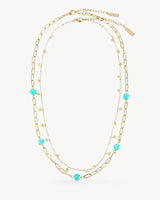 Add a touch of boho chic to your outfit with choosebyfelice's Turquoise Necklace Set, including a darling small hearts charm necklace paired with a timeless oval link necklace adorned with five Turquoise gemstones. Wear it alone or combined with a few other necklaces to create a look that will turn heads wherever you go! Get yours now.