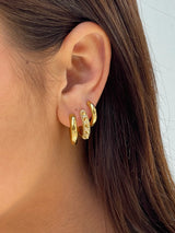These classic hoop earrings are expertly crafted of a premium stainless steel base with recycled 18ct gold plating which means that they are 100% hypoallergenic, waterproof and will not fade. Also available in Large and small.