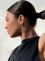 From our “Anything but Basic” Collection Introducing you our Ridged Ear Cuff Gold, designed to become your new core daily essential combined with our Classic hoop earrings for an instant trendy stacked look that will turn heads wherever you go. Shop yours now and beautify your ears on all your next upcoming days & nights!