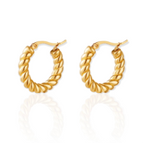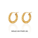 Upgrade your everyday hoop collection with choosebyfelice Twisted Hoop earrings. These stylish earrings feature a stainless steel base with 18ct gold plating, making them waterproof and durable! Perfect on their own or paired with other fine hoops or studs for a trendy look. Get yours today!