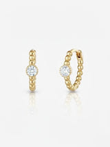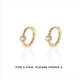 Sparkle with sophistication and grace in choosebyfelice Gigi Huggie Earring, featuring one dazzling white zirconia round stone that sits gracefully on a beaded hoop of polished 18ct gold plating. Effortlessly versatile, this earring works wonders when paired with a series of huggies or cuffs. This beauty is also available in the colors: Go to Emerald Green or pink.