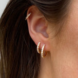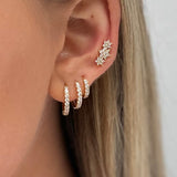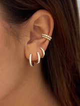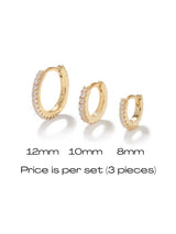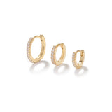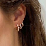 Beautify your ears with choosebyfelice triple pavé huggie earring set, featuring 3 classic hoop earrings that hugs the ear in the sizes 12mm & 10mm and 8mm, all set with white cubic zirconia stones all around. These beauties will instantly give you that eye-catching effect and are perfect for every day wear! Get your pavé earring set now in gold or silver.