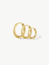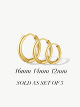Give your daily earring routine an upgrade with choosebyfelice Triple Hoop earring set, featuring 3 high quality hoop earrings in the sizes 16mm & 14mm and 12mm, all expertly crafted of a premium stainless steel base set with glowing recycled 18ct gold plating and the good news is, you never ever have to take them off because they're waterproof, so you can swim & shower with these stunners! Shop yours now and beautify your ears on all your next upcoming days & nights!