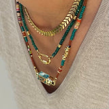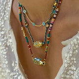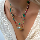 Give your love for Fall Colors an upgrade in choosebyfelice Love Locket Necklace Mixed Petrol, featuring a lustrous love locket charm set into a warm colorful beaded chain with glowing golden balls of 18ct gold plating. It's a stunning piece mixed with all the colors from this season. Wear it alone or combined with a few other necklaces for a trendy layered look.