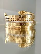 Embrace the everlasting classics with choosebyfelice Golden Bangle bracelet, featuring an expertly crafted bracelet adorned with our signature 18ct waterproof gold plating that will not discolor! This beautiful bracelet shows off an exquisite chic style around your wrist. Wear it alone or pair it with a few other bracelets for a stacked look that will shine for seasons to come. Order yours now.