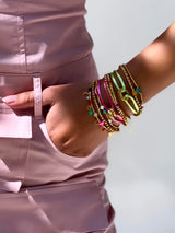 This bracelet is made of a high quality premium stainless steel base set with our signature waterproof 18ct Gold Plating. This means that it will not fade! All our jewels are 100% hypoallergenic, nickel, lead and cadmium free!