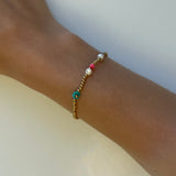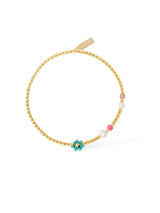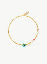 Adorn your layered look with choosebyfelice Turquoise Flower bracelet. This lovely bracelet shows of a handmade Turquoise flower charm and a trio of pearls set on a chain off gleaming 18ct gold plated round balls. This trendy bracelet is the perfect everyday piece, particularly when you flaunt it with a few other bracelets for a trendy yet classy style.