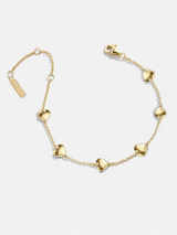 Add a little bit of love to your bracelet look with our New In Golden Grace Bracelet, the perfect fusion of chic and timeless glam, making it a versatile accessory for any occasion. Featuring 6 radiant golden hearts, set into a fine chain with cute dots. This shimmering jewel effortlessly catches every eye, whether you're dressing up or dressing down, our Golden Grace bracelet ensures your look will be unforgettable wherever you go. Order your Golden Grace Bracelet now.