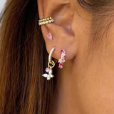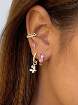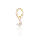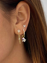 Channel your inner goddess with our Golden Butterfly Earring, featuring one expertly made butterfly charm that dangles elegantly underneath a small hoop earring fully set with luxurious zirconia stones all in 14ct gold plating. Wear it paired or combined with a few other earrings for a trendy look.