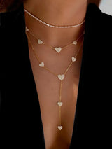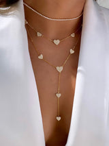 After the launch of our bestseller the Butterfly Y-chain Necklace many of you suggested a heart version. So here she is! May we introduce to you the stylish choosebyfelice Luxury Heart Y-Chain Necklace. Dainty, love and glamour becomes one in this beautiful design which highlights 5 luxurious adorned hearts set into a delicate Y shaped chain of glowing 18ct gold vermeil. Wear it alone or combined with a few other fine necklaces for a trendy look that will turn heads wherever yo go! Get yours today so you can wear it tomorrow (NL)
