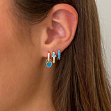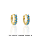 Beautify your ears with choosebyfelice Turquoise Huggie Earring, Featuring a small hoop earring that hugs the ear fully set with turquoise semi precious stones. This simple yet versatile small hoop earring is perfect to wear alone or combined with a few other earrings for a trendy layered look that will turn heads wherever you go! Get yours now.