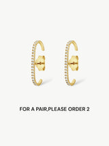 The Diamond Suspender Earring is a playful update on the classic huggie earring, the shape hugs your earlobe but also magically appears to hang from your inner ear. So cool, right? We made the Diamond Suspender with a radiant row of dazzling zirconia stones set in glowing 18ct gold plating.This sparkling single is the perfect subtle yet chic addition to your ear story so you can continue to make a statement that lasts forever! Make it yours now.