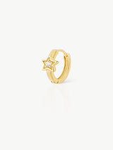 Rock a timeless style with choosebyfelice Golden Star Huggie Earring, featuring one single sparkling star classic 14ct gold plated hoop that hugs the ear. Wear it alone or pair this gem with a couple of huggies or stud earrings for a trendy look that will turn heads wherever you go. Get yours now.