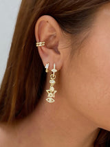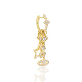 Evoke a look of glamour with choosebyfelice Lucky Stars Huggie Earring, featuring a chic luxurious huggie that flaunts seven sparkling celestial & lucky charms. Ever twinkling with style, this beauty is the perfect way to complete your outfit whether you wear it alone as statement piece or paired with a few other huggie or stud earrings for a trendy stacked look that will turn heads wherever you go! Shop yours now.