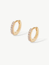 Elevate your everyday style with the choosebyfelice Pavé Huggie Earring, sparkling with clear white pavé zirconia stones that catch the light beautifully. This charming hoop hugs your ear, adding a touch of playful elegance to any look. Perfect for stacking or wearing solo, it brings a subtle yet dazzling shine that brightens your day and turns heads wherever you go. Make your ear game effortlessly chic with this timeless classic!