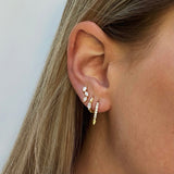 Adorn yourself with choosebyfelice Spike Huggie Earring, featuring an expertly crafted small hoop huggie earring set with sparkling Clear Zirconia stones with an edgy spike accent underneath. This luxury single earring is the perfect match in every layered setup whether you go for a sporty look or fine classy look this is the piece for you. Shop yours now!