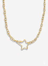 Get ready to shine with choosebyfelice's Golden Star Lock Necklace! This unique piece features an open-frame star lock on a beautifully crafted 18ct gold plated oval link chain .This dazzling luxurious piece twinkles with subtle glam, making any necklace stack all the brighter! Add it to your collection today!