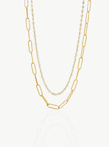 Add a touch of modern elegance to your outfit with the Pearl X Link Chain Necklace from choosebyfelice. This unique design blends a delicate pearl necklace with a stylish link chain, perfect for layering or wearing alone. Create your own trendy look with this versatile piece.