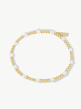 Elevate your arm-candy with choosebyfelice's Fine Pearl Bubbel Bracelet, adorned with stunning faux pearls on a dazzling chain of 3mm golden beads with a waterproof 18ct gold plating that will never fade! This bracelet is ideal for everyday wear, whether you wear it alone or combined with a few other bracelets for a stylish eye-catching look. Get yours today so you can wear it tomorrow(NL).
