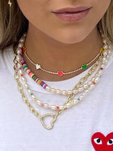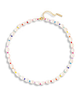 Elevate your outfit with the choosebyfelice Funky Pearl Necklace, including a chain of shiny white freshwater pearls and vibrant beads. This gem is the perfect combination of sophistication and style, guaranteed to make your outfit stand out. And once you put it on, you might just end up leaving it on for good! Wear it alone or layer it with other necklaces to complete your bold and colorful look. Get yours today.