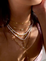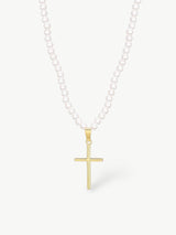 Our La Cruz necklace is made of a premium stainless steel base with 18ct gold plating and artificial pearls ( not waterproof!) All our jewels are 100% hypoallergenic, nickel, lead and cadmium free!