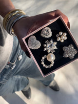 These beautiful broches are made of a copper base with platinum plating set with zirconia stones & pearls. All our jewels are 100% hypoallergenic, nickel, lead and cadmium free!