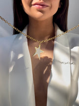 Trendy and stylish become one in this cool design, the Big Star Necklace by choosebyfelice. Featuring a dazzling star charm dangling underneath a beautiful oval link chain set with our signature waterproof 18ct gold plating. This stunner is the statement piece that will make heads turn trough out all seasons. Shop yours now.