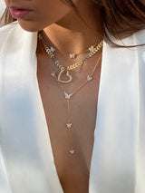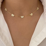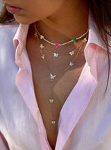 Let your sense of style spread it's wings in choosebyfelice Butterfly Necklace. Dainty and darling become one in this dazzling charming design which highlights five pavé-adorned butterfly charms set on a delicate chain of glowing 18ct gold plating. Wear it alone or combined with a few other fine necklaces for a lovely trendy look. Shop yours now.