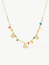 Add a pop of coins & color to your outfit with choosebyfelice Golden Coin Beaded Necklace, featuring an alternating pattern golden beads with coins and semi precious stones that dangle gracefully from a fine 18ct gold plated chain. Fun yet sophisticated, this gem makes your outfit simply stand out. Wear it alone or combined with a couple of your favourite necklaces to match your vibrant look.