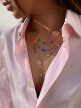 This necklace is made of a stainless steel base set with a high quality 18ct Gold plating and golden beads & natural stones. All our jewels are 100% hypoallergenic, nickel, lead and cadmium free!