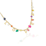 Treat yourself or someone special to this beautiful symbol of Love! The beautiful choosebyfelice Natural Stones Love Necklace, featuring a handmade expertly crafted alternating patterned gold beads with semi-precious stones paired with golden love letters and a delicate gold heart charm dangling gracefully from a fine 18ct gold-plated chain. Sophisticated and stylish this gem simply makes all your outfit stand out and we promise, once wearing it, you'll never want to take it off! Wear it alone or pair it with some of your favourite necklaces to match your vibrant look. Shop yours now.